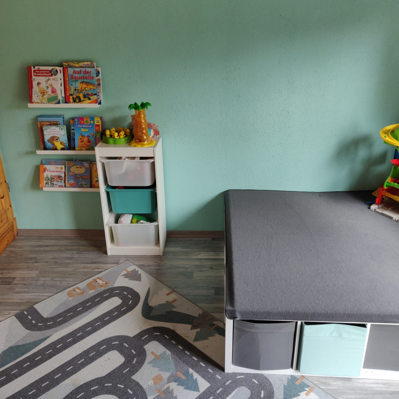 Die Räume meiner Kindertagespflege bieten den Kindern viel Platz zum Toben, Spielen und Schlafen. Es stehen 2 liebevoll eingerichtete Räume mit einer Fläche von insgesamt 25 Quadratmetern für vielfältige Entdeckungen bereit. In unserem Haus sind separate Räume für die Kindertagespflege eingerichtet. Die Einrichtung ist modern und mit der kindgerechten Ausstattung fühlen wir uns hier jeden Tag wohl. Sicherheit ist beim Spielen wichtig und so sind die Räume mit verschiedenen Features ausgestattet, die unbekümmertes Spielen ermöglichen.